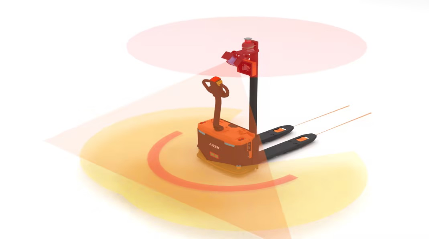 ②智能避障,主动防护: 集成激光雷达、3D视觉、超声波等多重传感器,实时感知环境动态障碍物(人员、设备、货物),自动减速或停车,保障人、物、设备安全。