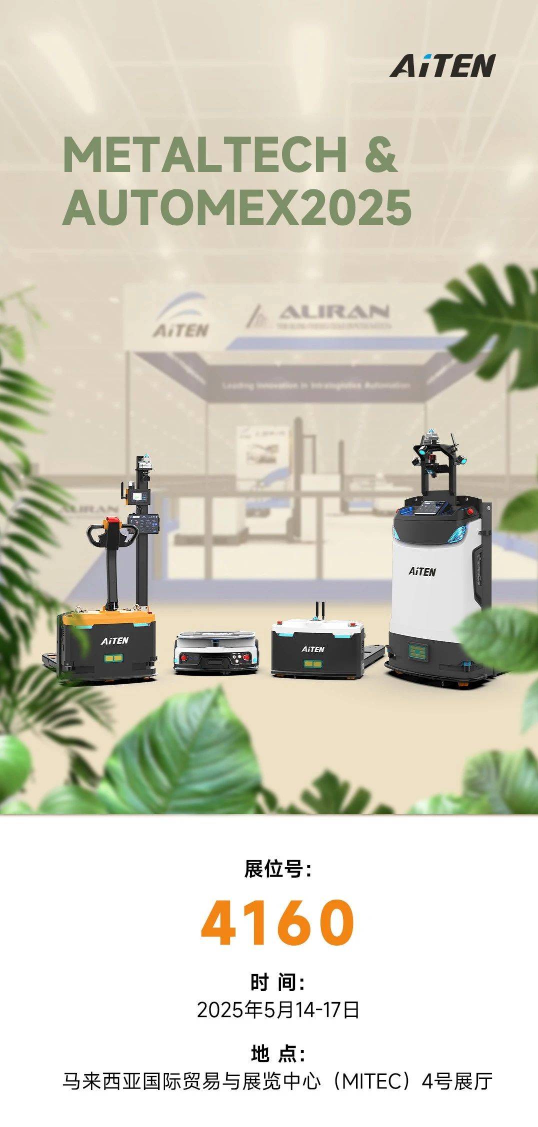 倒计时启动!诚邀您参与现场动态演示,yaboAiTEN将携搬运移动机器人AM15,MP10,APE15,TT15惊艳亮相(2025.5.14-17)。